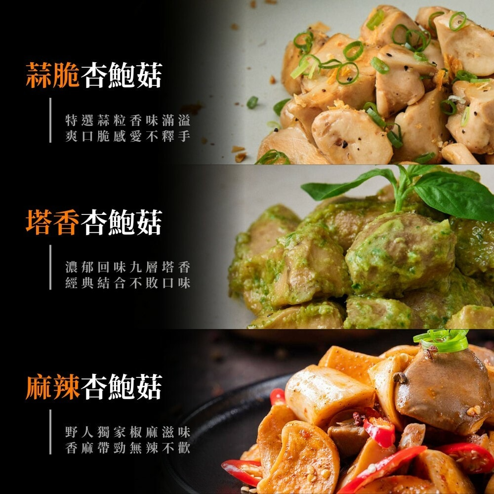 1.商品品名:【野人舒食】舒肥杏鮑菇24包組(180g/包)(蒜脆/塔香/麻辣)