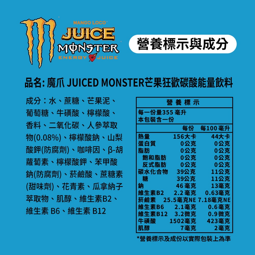 2.商品品名:【Monster Energy 魔爪】芒果狂歡能量碳酸飲料易開罐355ml (24入/箱)