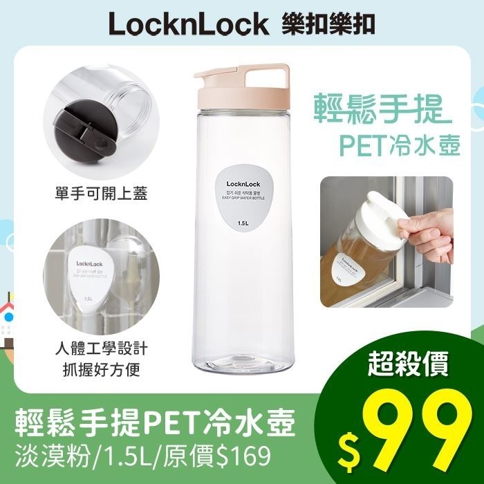商品名稱 :【樂扣樂扣】手提PET冷水壺1.5L(大象灰/ 淡漠粉)