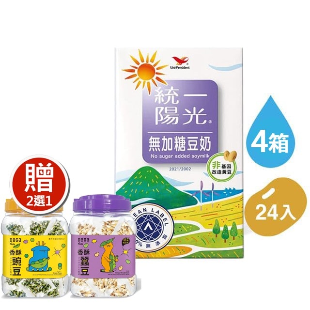 2.商品組合/規格:【統一】陽光無加糖豆奶(6入)TP250ml*24入/箱