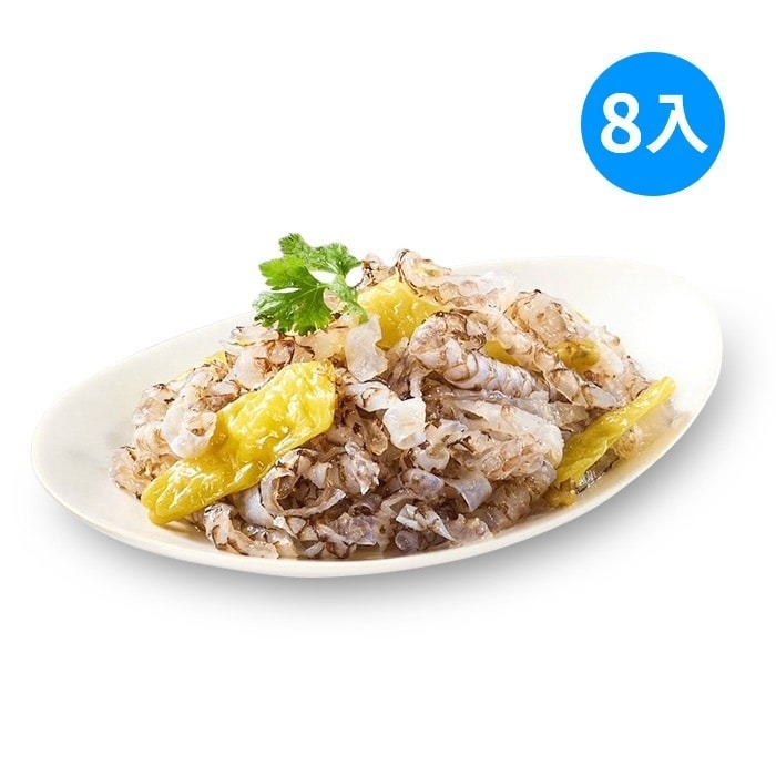 成分(全展開):魚皮(非洲鯽魚)、水、泡小米椒[小米椒、水、食用鹽、調味劑(檸檬酸、冰醋酸)、抗氧化劑(異抗壞血酸鈉)、漂白劑(偏亞硫酸氫鈉)]、白砂糖、食用鹽、味精、食用酒精、檸檬酸、肉味王調味料[食用鹽、味精、白砂糖、麥芽糊精、複方香料(香料、5'-鳥嘌呤核苷磷酸二鈉、5'-次黃嘌呤核苷磷酸二鈉、琥珀酸二鈉、二氧化矽)、蔥、洋蔥粉、辣椒、大茴香、丁香]、冰醋酸、5'-鳥嘌呤核苷磷酸二鈉、5'-次黃嘌呤核苷磷酸二鈉、香料、抗氧化劑(維生素C)、肉香寶固態調味料[葡萄糖、玉米澱粉(使用基因改造玉米)、味精、酵母提取物、麥芽糊精、食用鹽、複方調味劑(5'-鳥嘌呤核苷磷酸二鈉、5'-次黃嘌呤核苷磷酸二鈉、乙基麥芽醇、香料)]、關華豆膠、辣椒油樹脂、焦磷酸鈉