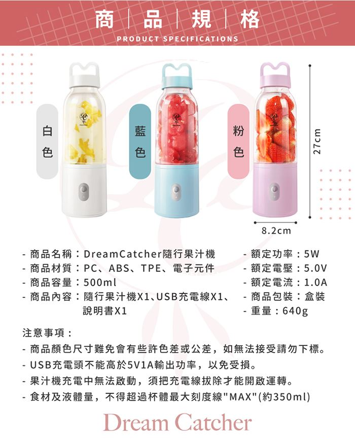 【DreamCatcher】 捕夢網-隨行果汁機(白色)