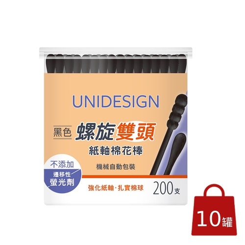 【UNIDESIGN】黑色紙軸螺旋雙頭棉花棒(200支/罐)x10罐
