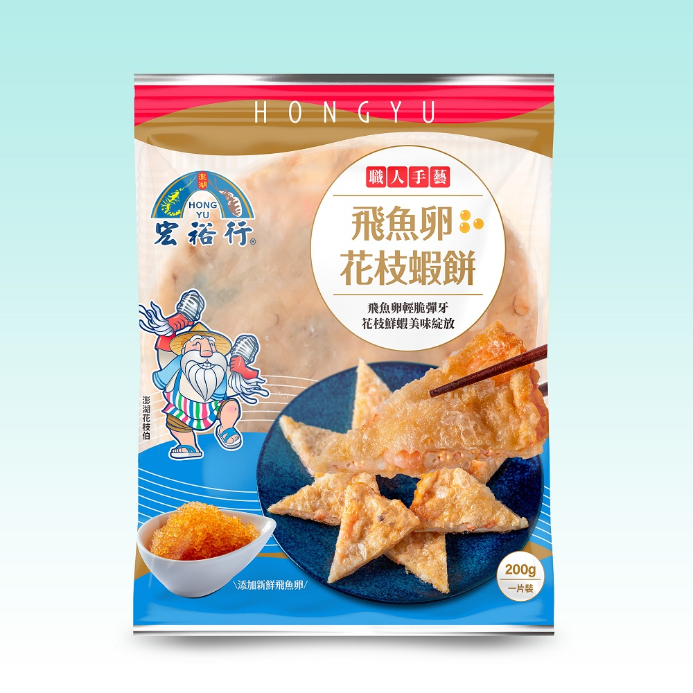 【宏裕行】飛魚卵花枝蝦餅x4包(200G/包) 商品組合/規格:200G/包 內容物成分(全展開)成分有豬及牛的需於背後標註產地:蝦仁、花枝、豬背脂油(台灣)、飛魚卵、春捲皮(麵粉、鹽、水)、樹薯澱粉、糖、L-麩酸鈉、胡椒、鹽、磷酸鹽(多磷酸鈉、焦磷酸鈉) 原產地(國):台灣 保存期限:18個月 製造廠商或國內負責廠商名稱:宏裕行食品股份有限公司 製造廠商或國內負責廠商地址:高雄市前鎮區新生路240號 製造廠商或國內負責廠商電話:07-8217799 食品業者登錄字號:E-129004188-00000-4 投保產品責任險字號:國泰世紀產物保險1503字第13PD02115號 過敏原:本產品含有頭足類、魚類、麩質等及其製品,不適合對其過敏體質者食用。