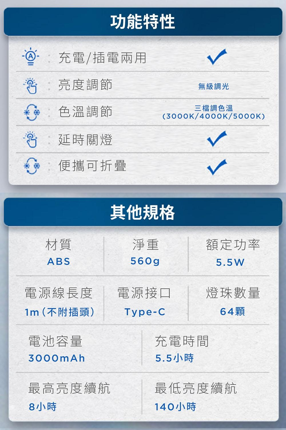 充電插座兩用檯燈,可折疊,輕便好攜帶