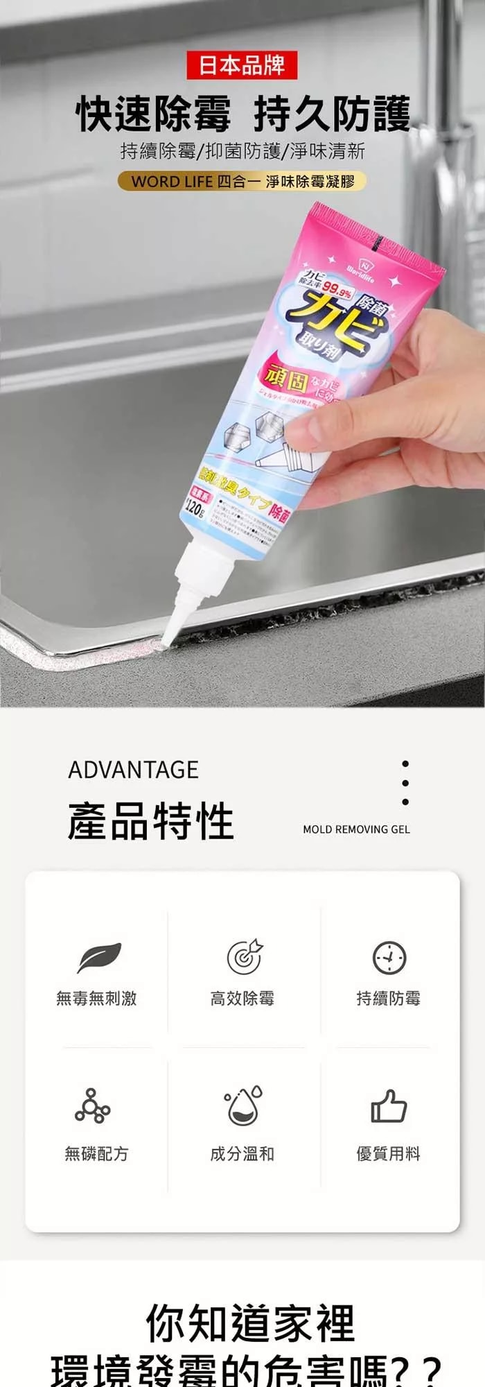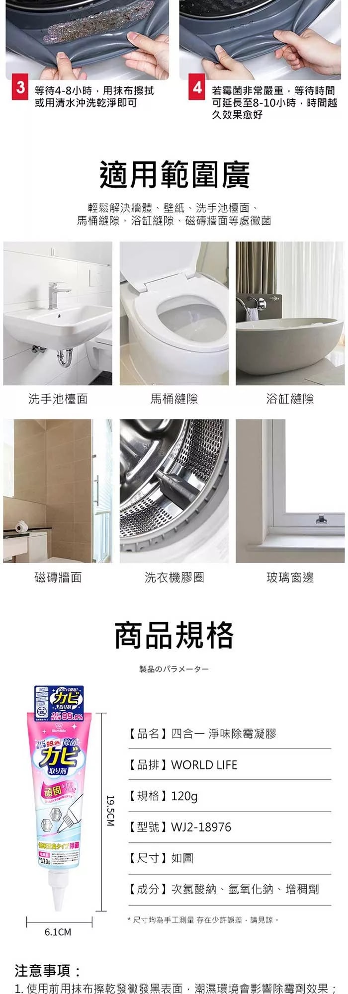 【日本World Life】新升級 四合一淨味除霉凝膠 除霉膏120g x3入