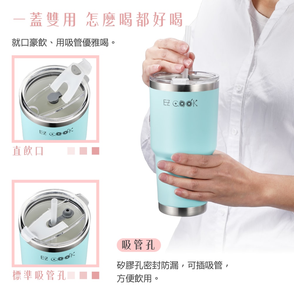 ●防潑灑杯蓋,就口直飲、吸管插口雙用。