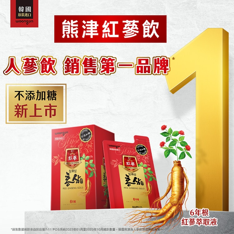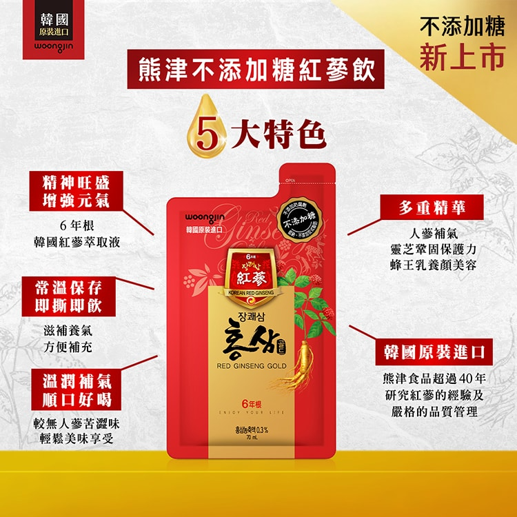 【韓國熊津】不添加糖紅蔘飲禮盒(24入/組)買一送一,共2盒