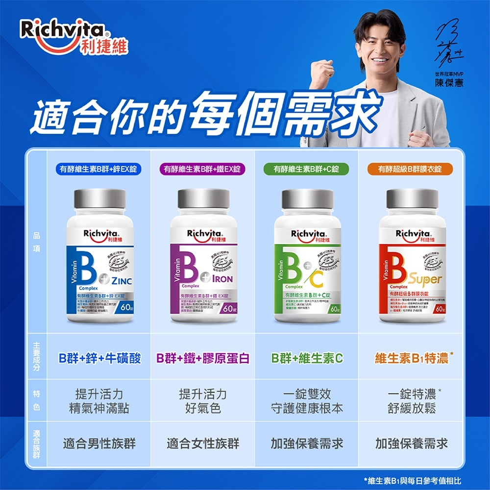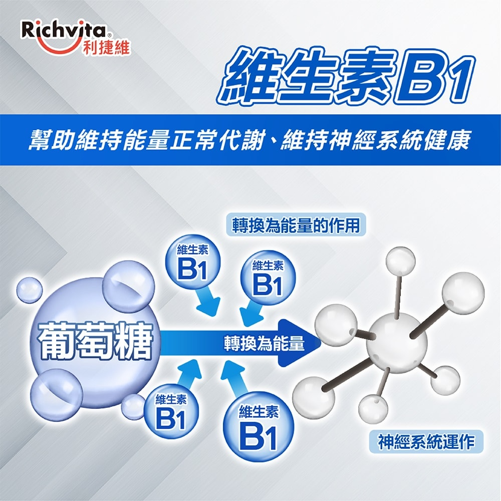 食品添加物:抗壞血酸(維生素C)、菸鹼醯胺、牛磺酸、硝酸硫胺明(維生素B1)、核黃素(維生素B2)、聚乙烯吡咯烷酮、本多酸鈣、氧化鋅、羥丙基甲基纖維素、二氧化矽、硬脂酸鎂、鹽酸吡哆辛(維生素B6)、聚乙二醇、二氧化鈦、食用紅色四十號鋁麗基、食用藍色一號鋁麗基、葉酸、生物素、氰鈷胺明(維生素B12)。