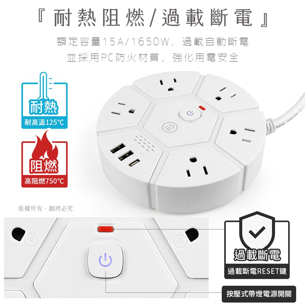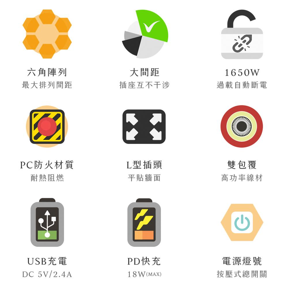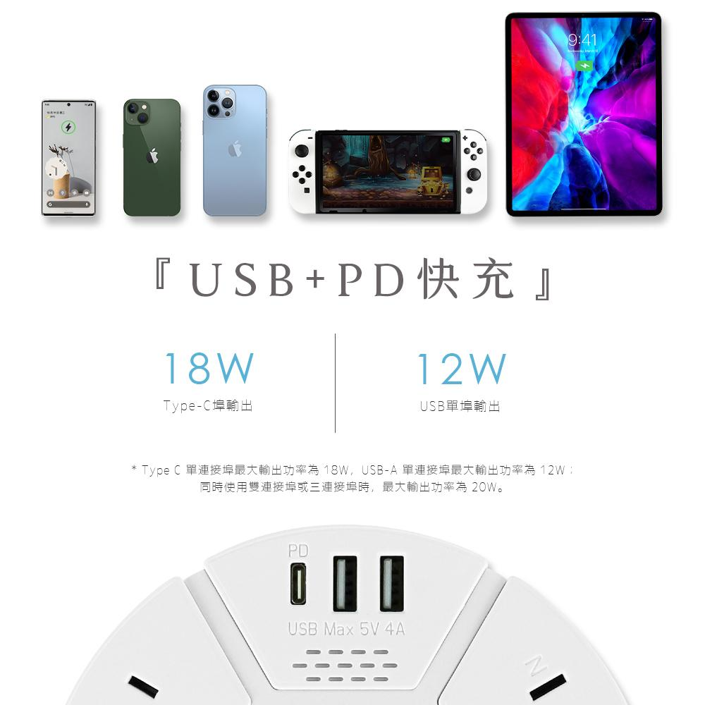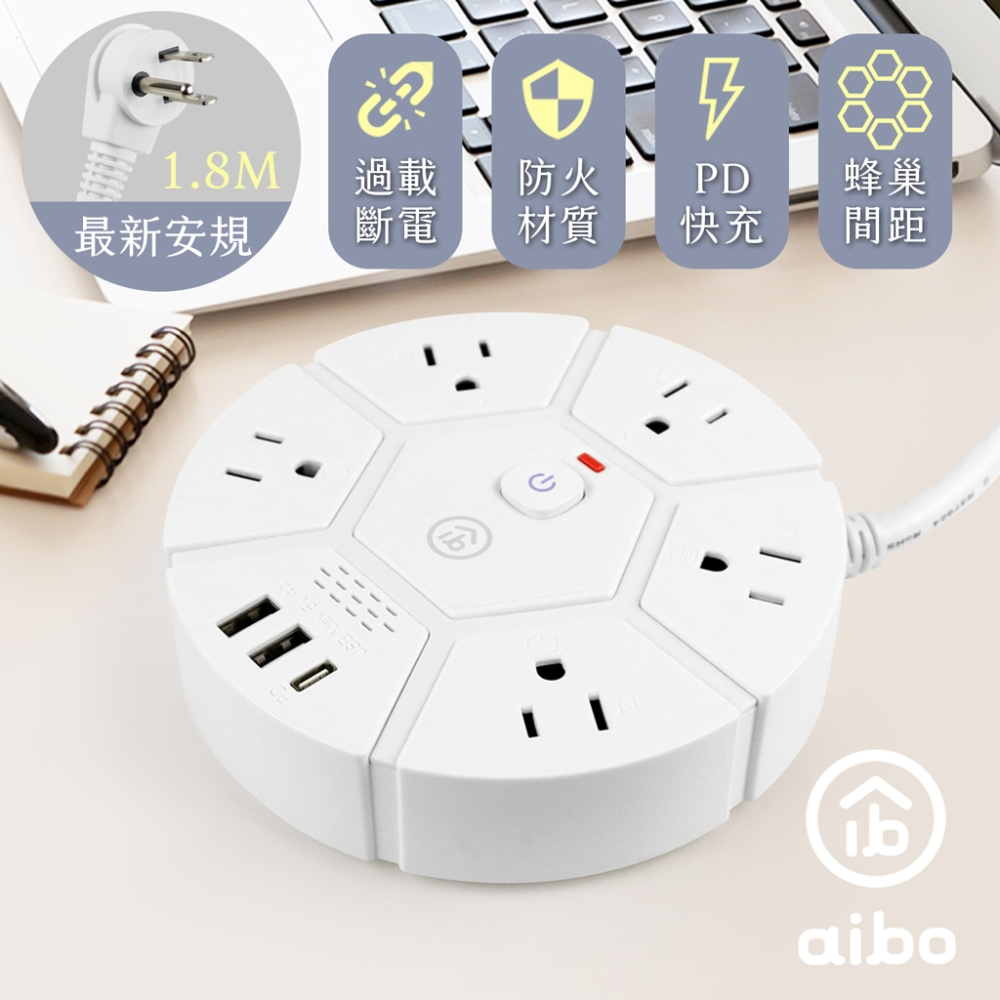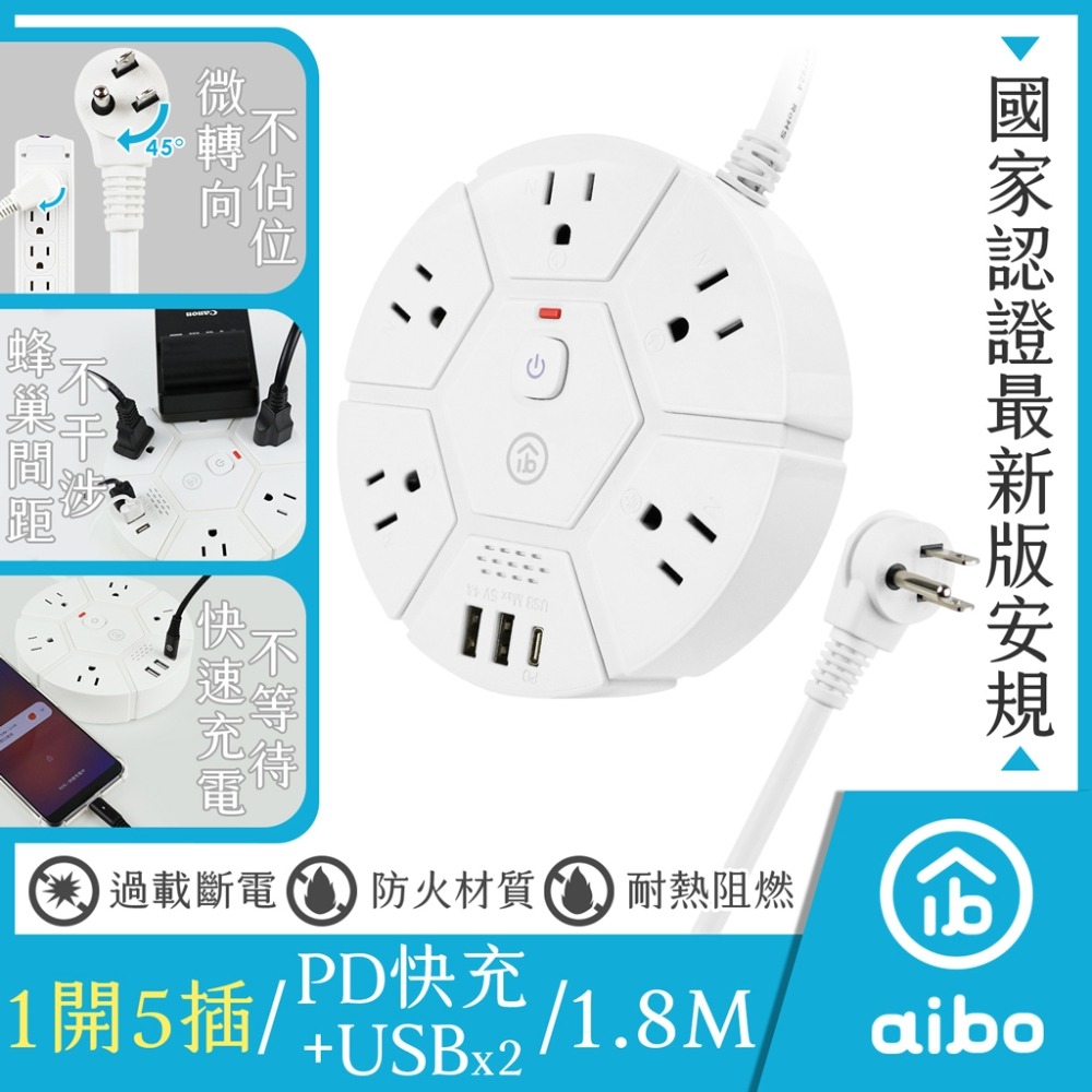 【aibo 鈞嵐】PD快充20W USB延長線-1.8米 (3孔1切5座+PD+2USB)