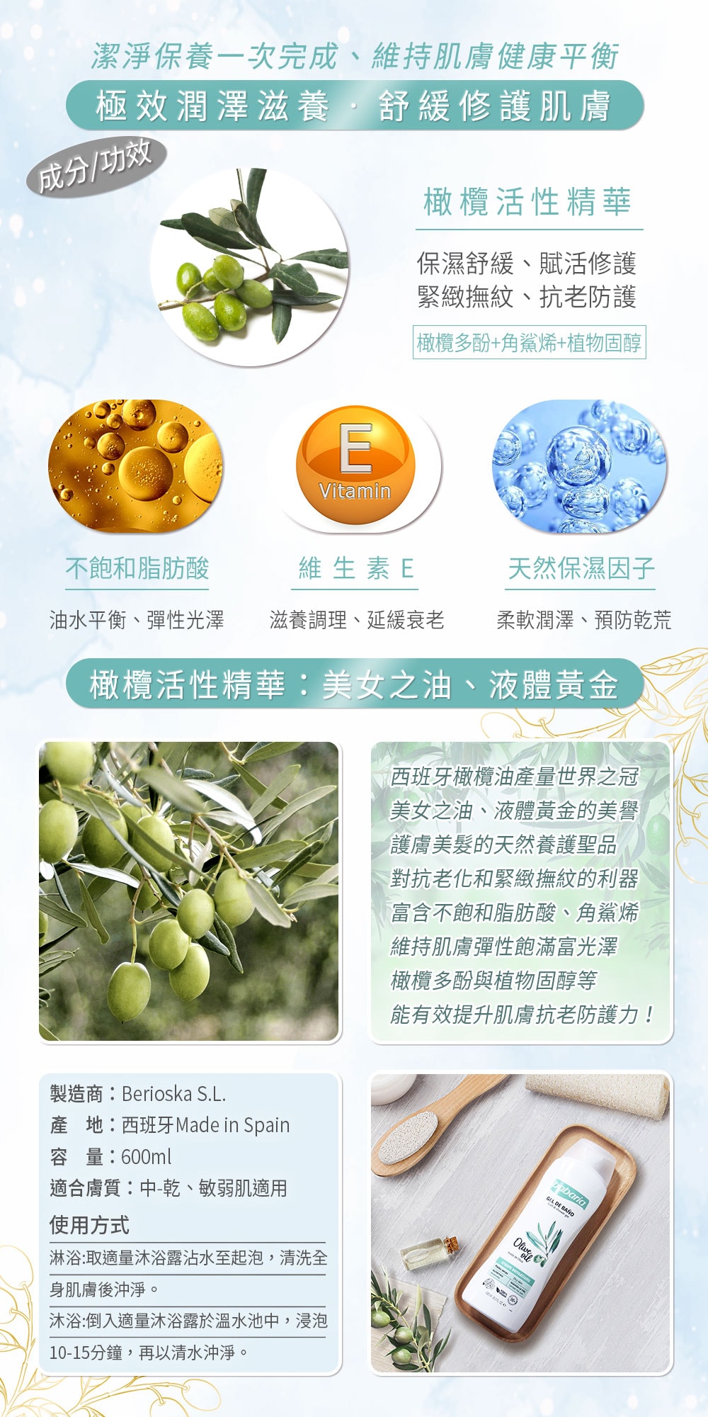 🔸 液態黃金養膚:橄欖精華修護肌膚、預防乾荒