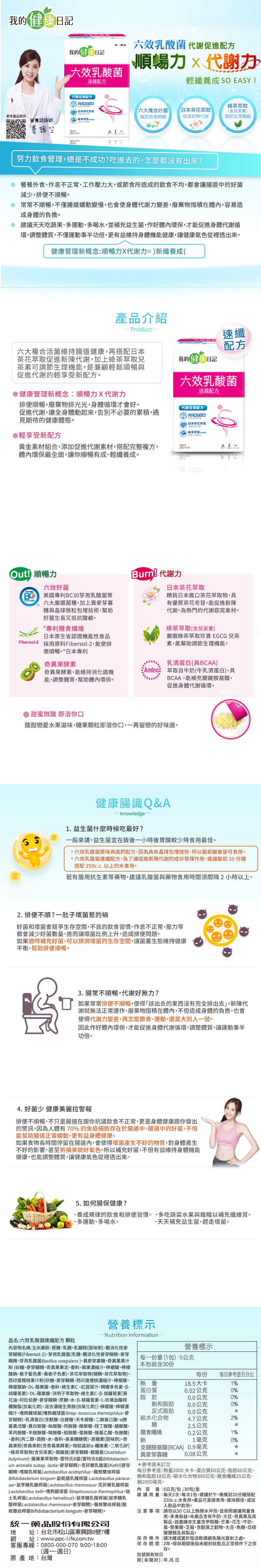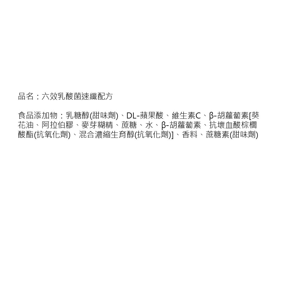 1.商品品名:【我的健康日記】六效乳酸菌速纖配方顆粒30入