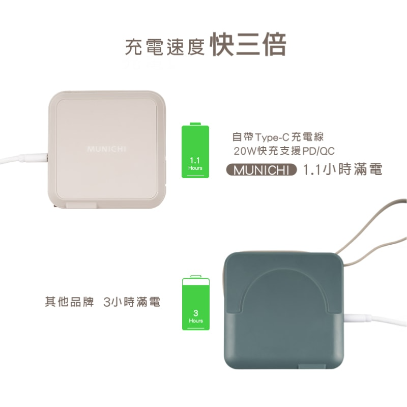 【MUNICHI 沐尼黑】MR.100行動電源(霧霾藍/雲朵白/史黛拉紫)