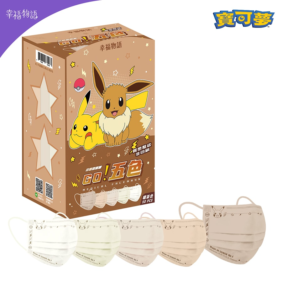 ◆商品品名:【幸福物語】醫用口罩50入-暖茶色(寶可夢)