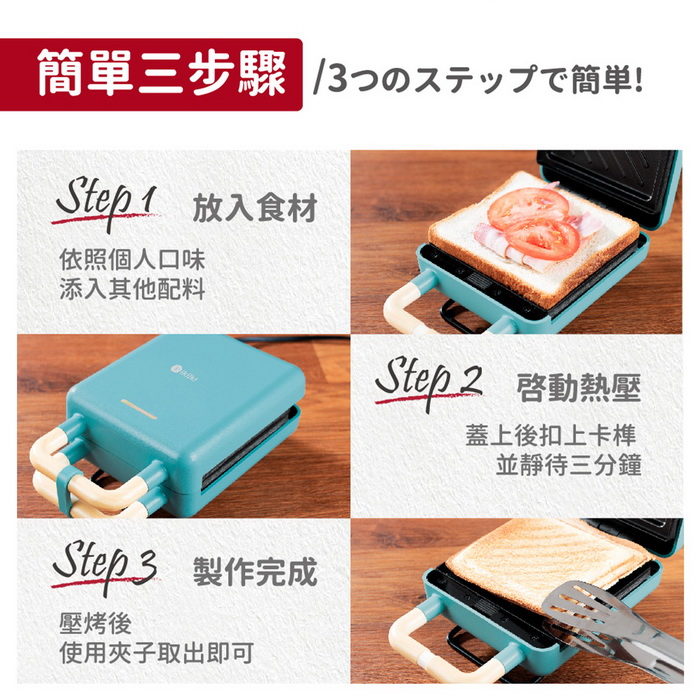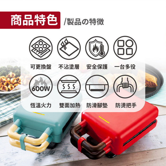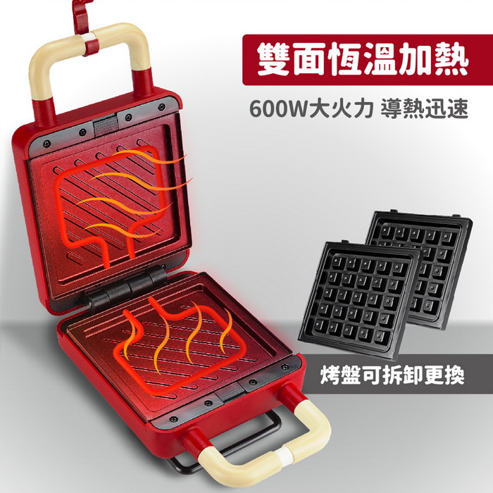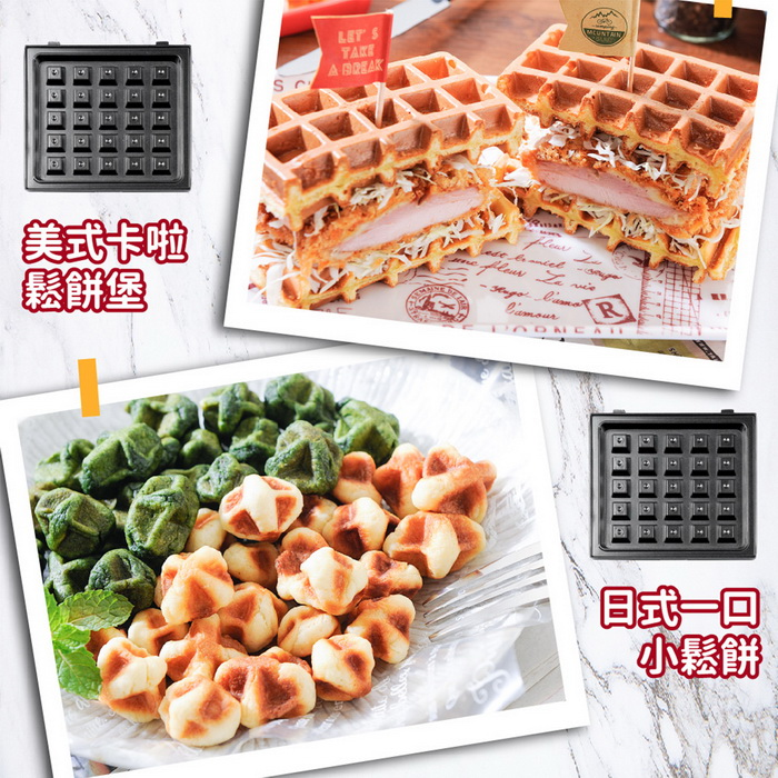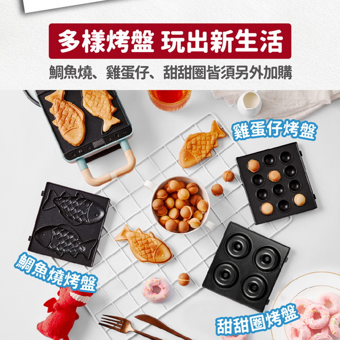 .兩種烤盤(鬆餅、三明治烤盤),一機多種美味變化。適合親子、好友、戀人一起動手做!