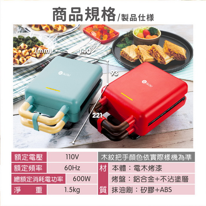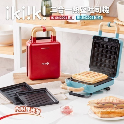 【7-ELEVEN 門市團購】【ikiiki伊崎】二合一熱壓吐司機 紅色/灰綠+贈刮刀*1支