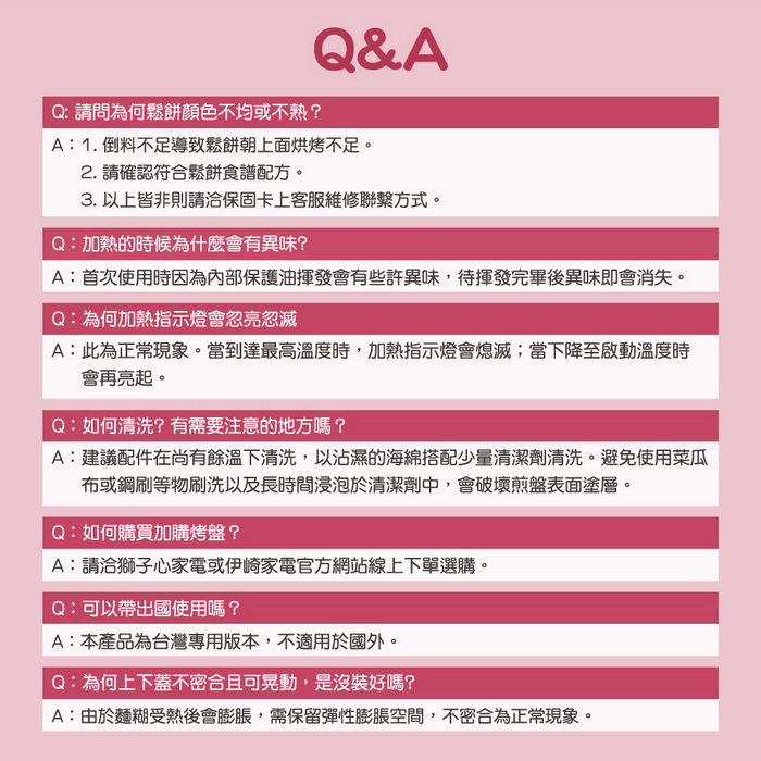 .配件:二組烤盤(鬆餅、三明治烤盤)、說明書、保固書、食譜、抹油刷