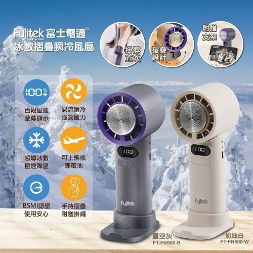 【富士電通】冰敷摺疊瞬冷風扇 星空灰/奶油白