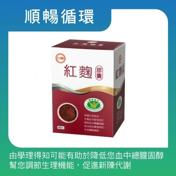 主要成份:紅麴、膠囊(明膠、二氧化鈦、甘油、食用黃色5號、硫酸月桂脂鈉、食用紅色6號、食用藍色1號、純水)