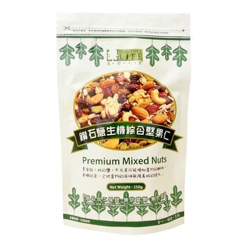 主要成份:南瓜子、杏仁果、腰果、葵瓜子、松子、葡萄乾、青提子、蔓越莓、核桃、RealSalt®鑽石鹽