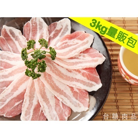 台糖豬以拉除肋骨的豬腹脇肉去皮、修整,切製成厚度約0.4公分,長度約6公分之厚肉片,每包3公斤封袋包裝。