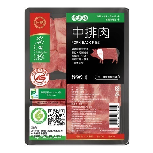 台糖以豬前肢排含肋骨部位,修除淋巴、脂肪,切製成每塊長約4公分,每盒600公克分二格封盒包裝;