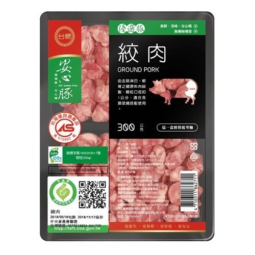 由去除淋巴、軟骨之豬原料肉絞製,脂肪含量約25%,顆粒口徑約1公分,每盒300公克分二格封盒包裝;
