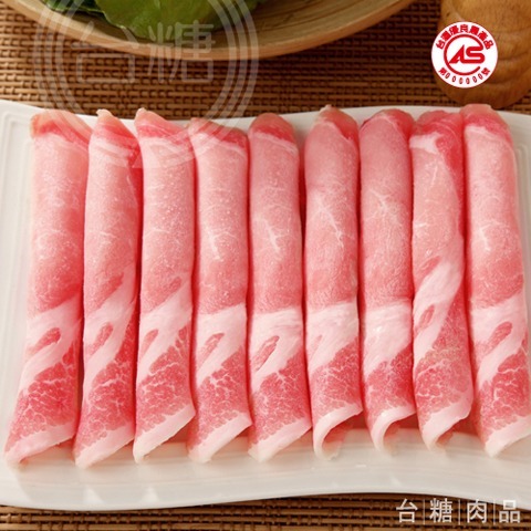 台糖 特選安心豚大里肌部位肉,修除脂肪切製成每片厚度約0.2公分之圓捲狀,每盒200公克封盒包裝,
