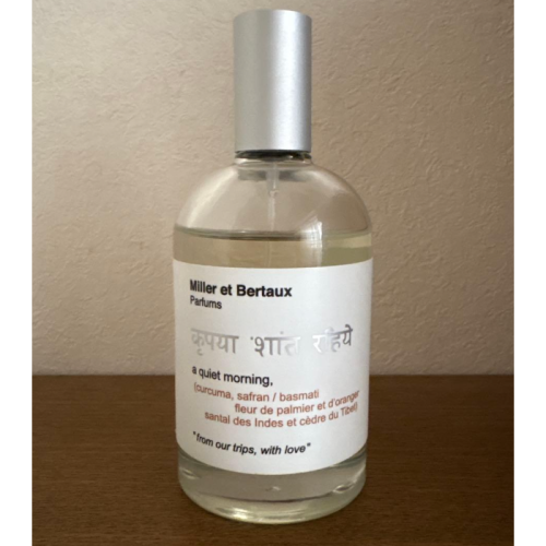 Miller et Bertaux Quiet Morning(寧靜晨曦)是一款2008年推出的芳香辛辣調中性香水,以印度為靈感,捕捉清晨寧靜、溫暖的氛圍。這款香水以姜黃、藏紅花、大米、檀木和西藏雪松為主調,帶來獨特的香料與木質饗宴,展現出遠離塵囂、優雅且清新的禪意感受。