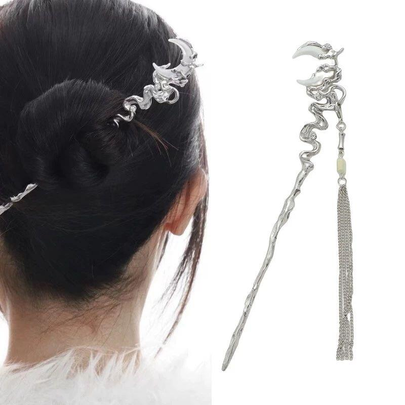 ✨台灣現貨🌿月亮、花朵古風氣質流蘇髮簪 新中式簡約髮釵個性可拆卸設計盤髮簪子【L27】