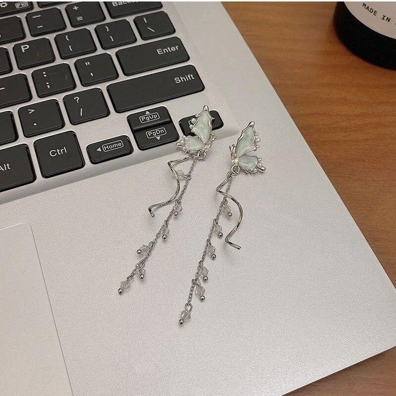 #韓國 #水晶花 #銀針 #不對稱 #長款耳環 #珍珠 #防過敏 #韓系 #吊墜 #花朵 #髮飾