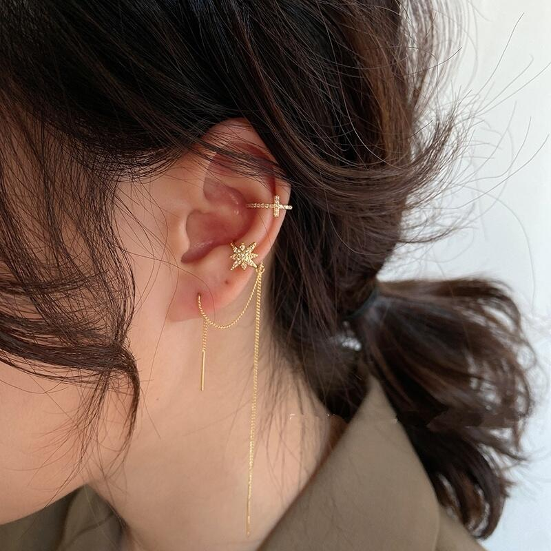 1#八芒星耳線流蘇耳骨夾(單隻) : 耳骨夾寬約1.3CM 鏈長約9.1CM