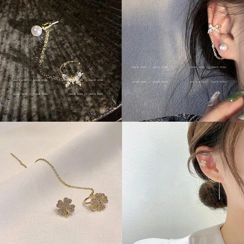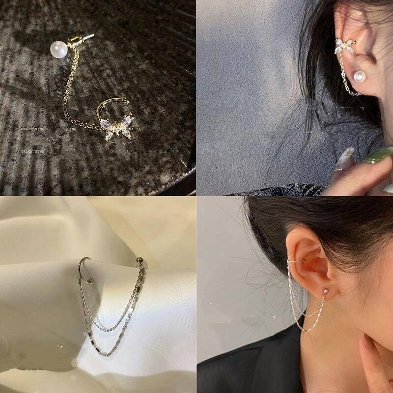6#蝴蝶珍珠耳線流蘇耳骨夾(單隻) : 耳骨夾寬約1.2CM 鏈長約4.5CM