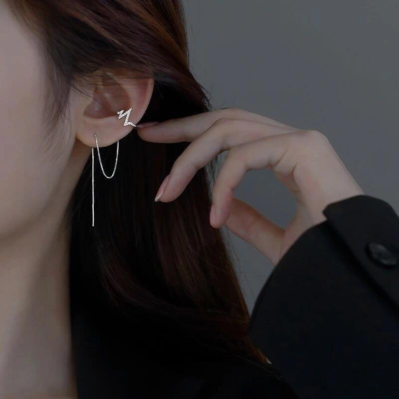 3#閃電形耳線流蘇耳骨夾(單隻) : 耳骨夾寬約1.4CM 鏈長約9.1CM