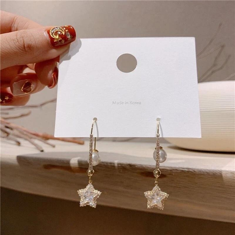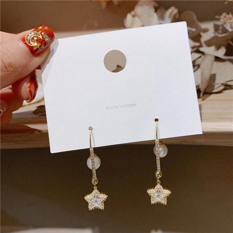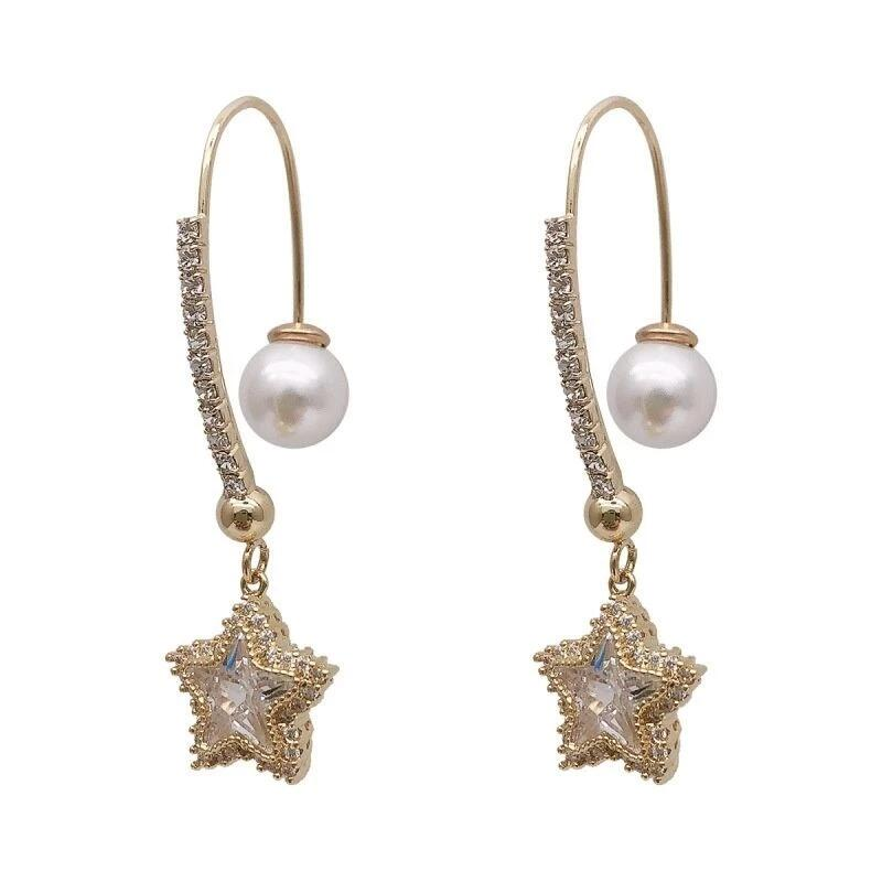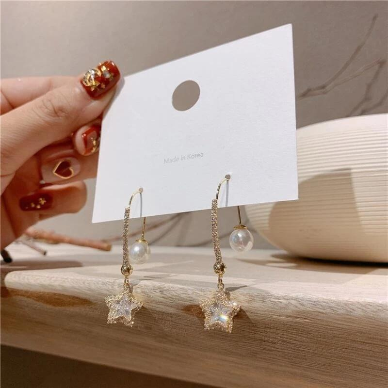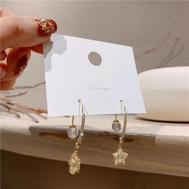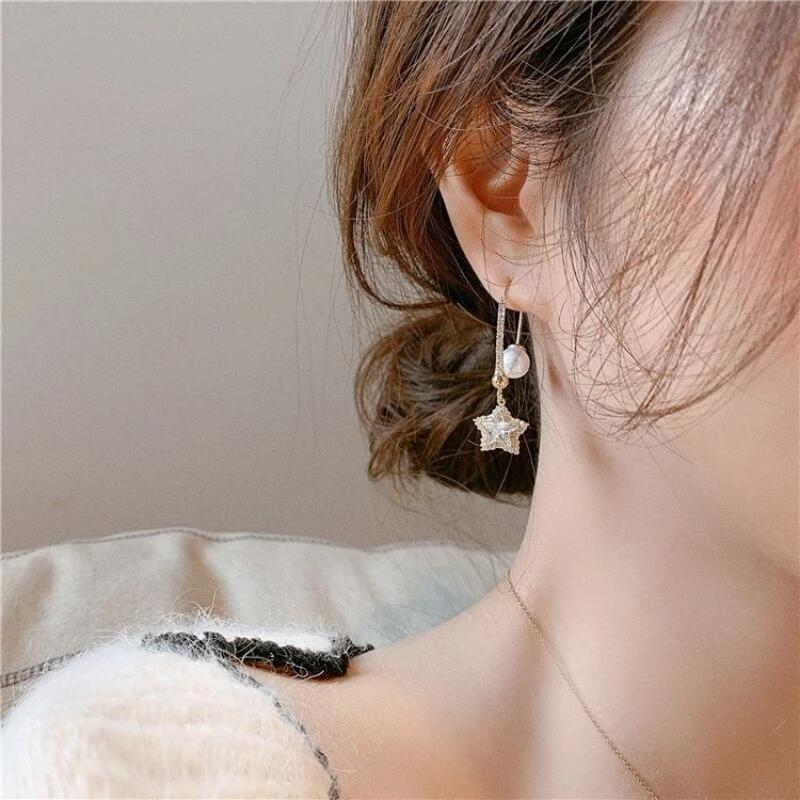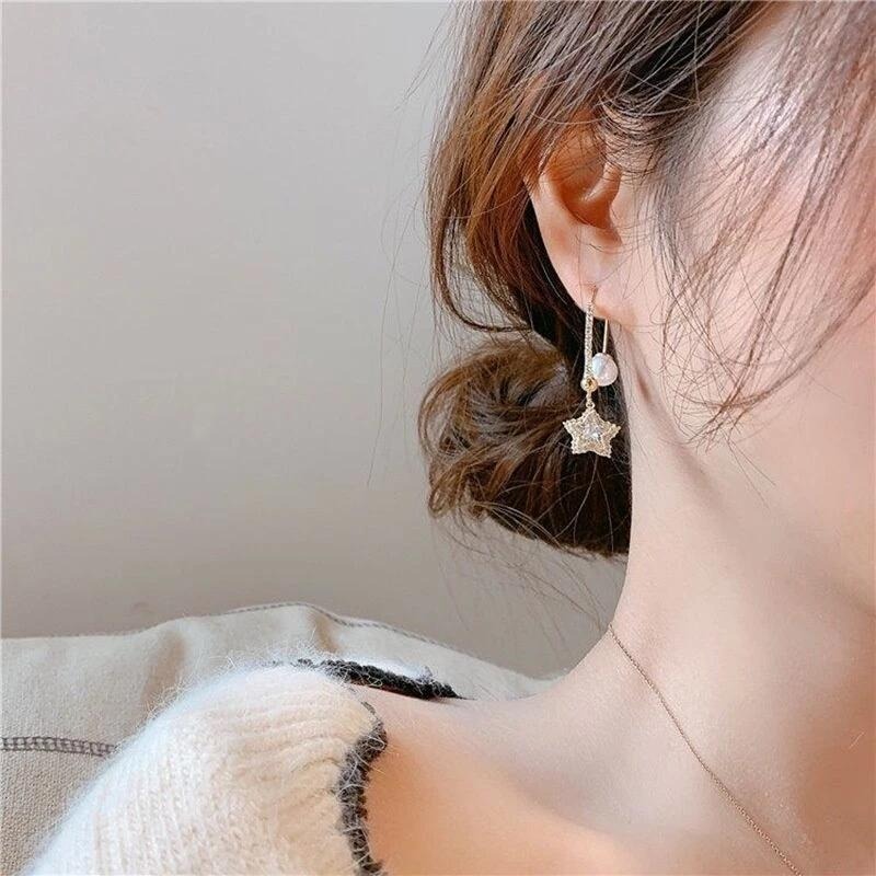#韓國 #水晶花 #銀針 #不對稱 #長款耳環 #珍珠 #防過敏 #韓系 #吊墜 #花朵 #髮飾