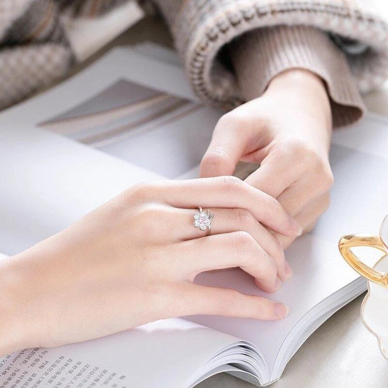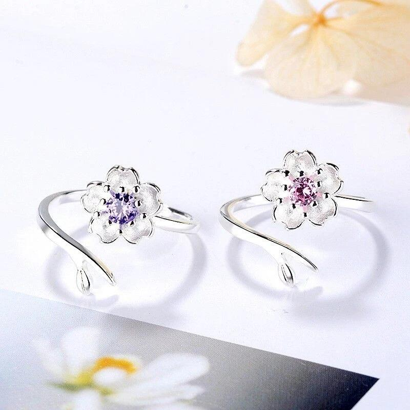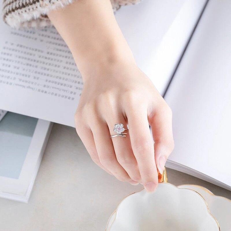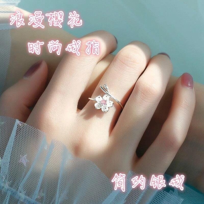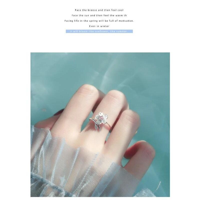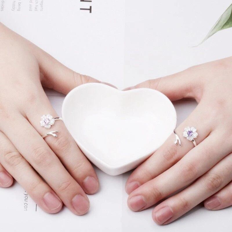 櫻花設計的手指環與萊茵石中心。