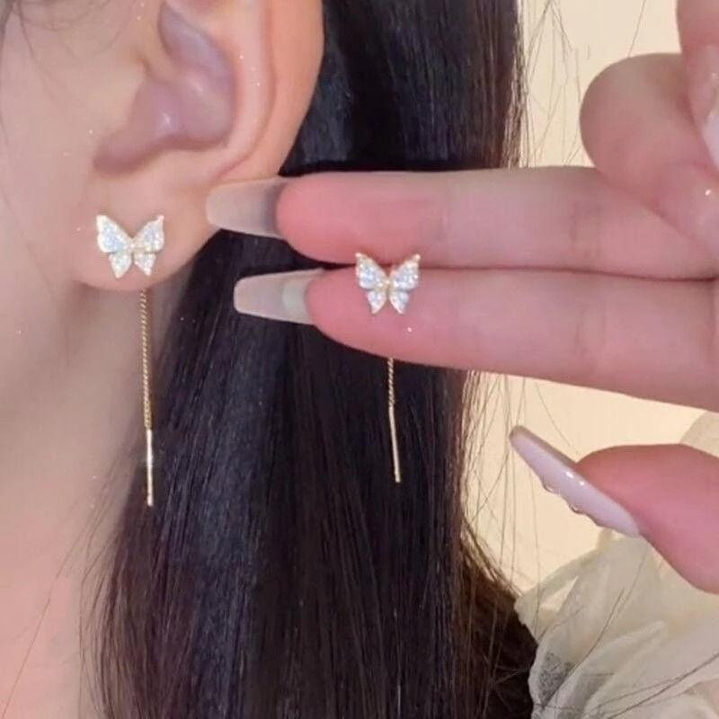 #韓國 #水晶花 #銀針 #不對稱 #長款耳環 #珍珠 #防過敏 #韓系 #吊墜 #花朵 #髮飾