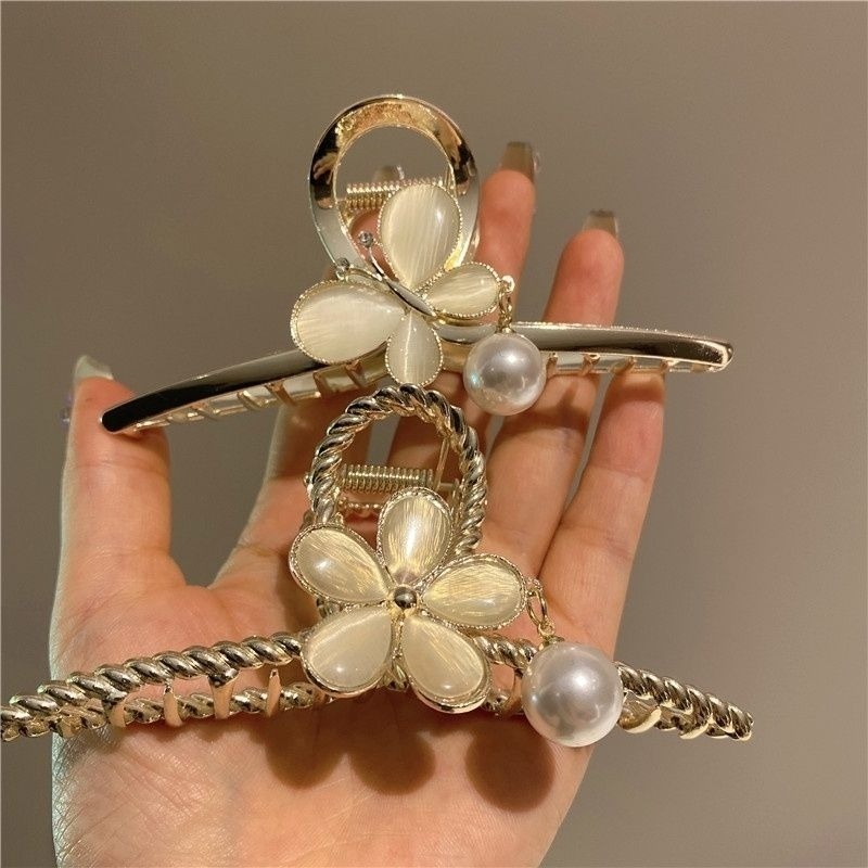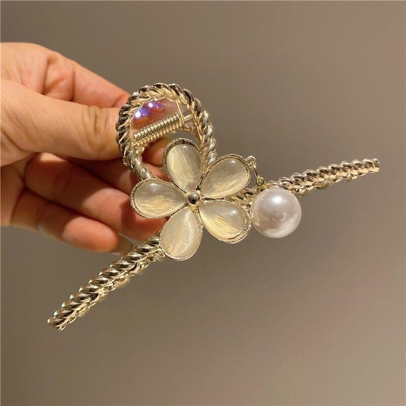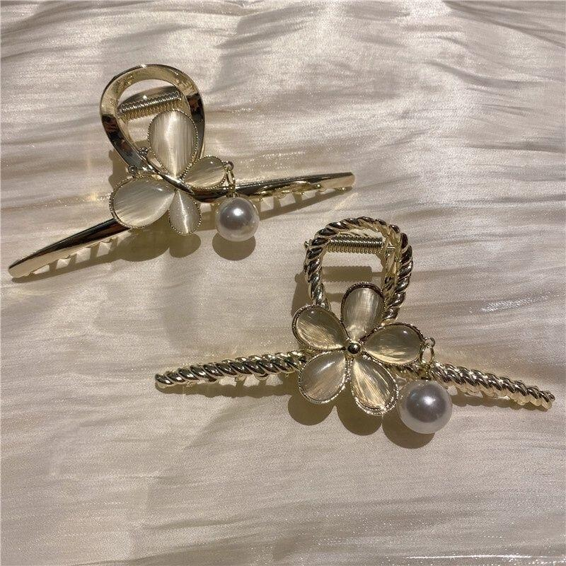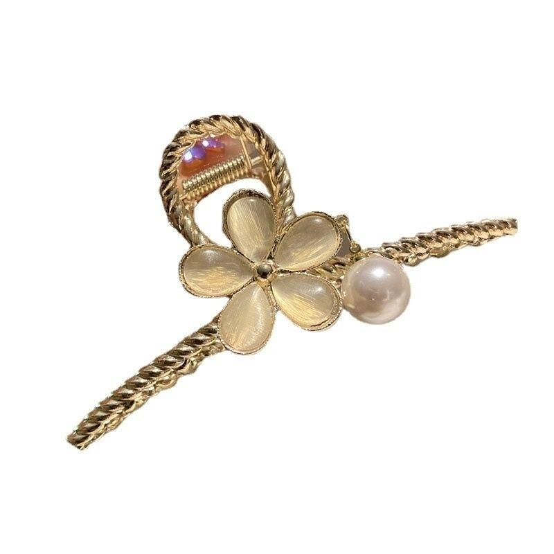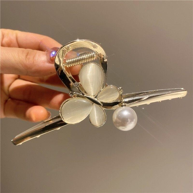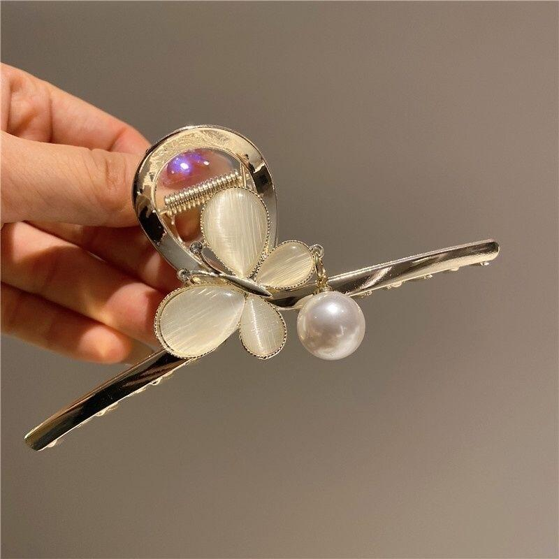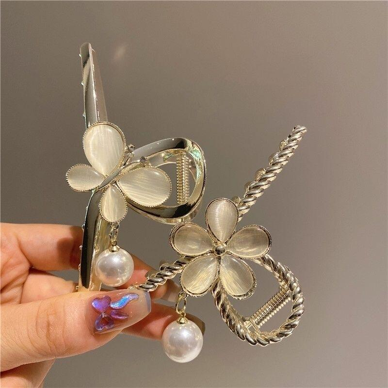 ⚡️髮夾一面是貓眼石蝴蝶花朵裝飾,另一邊為素面