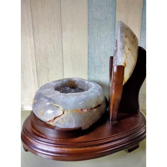 全拋上下蓋造型瑪瑙聚寶盆 清透閃亮