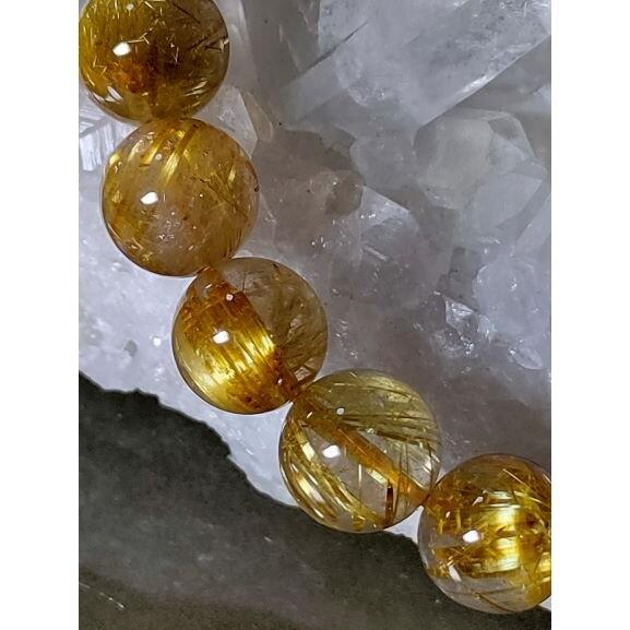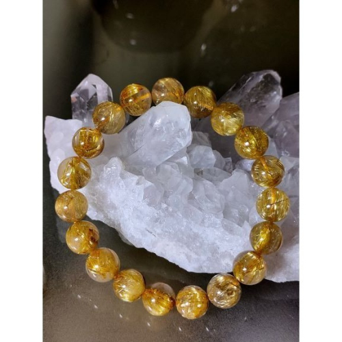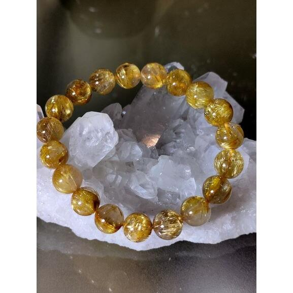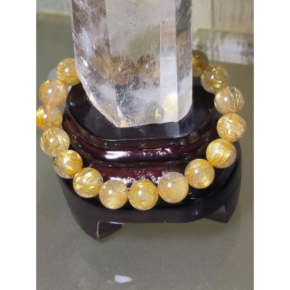 含針狀或板狀礦物質鈦之髮絲,鈦晶氧化後呈閃亮的金色,有些珠還會含有極少的棕黑色發頭礦物質),是現今最珍貴的水晶,磁場特強。