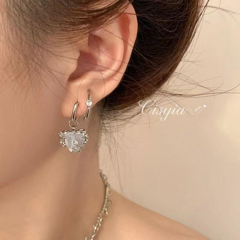 #韓國 #水晶花 #銀針 #不對稱 #長款耳環 #珍珠 #防過敏 #韓系 #吊墜 #花朵 #髮飾