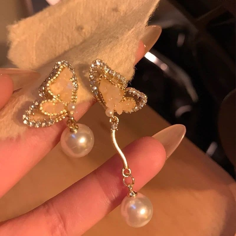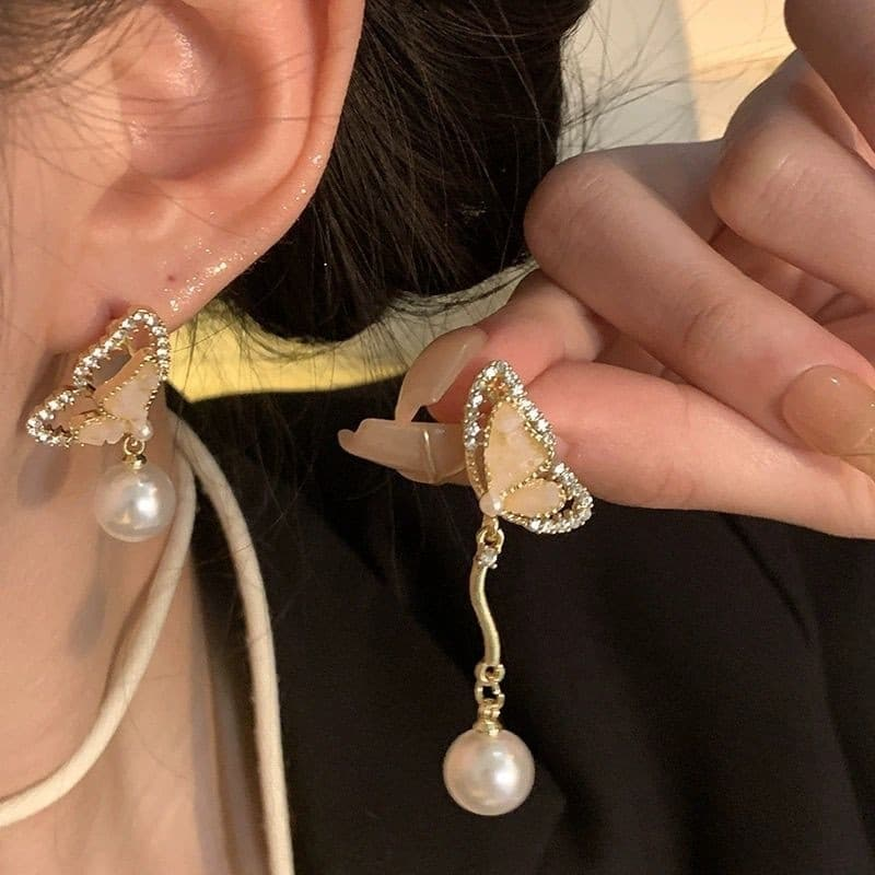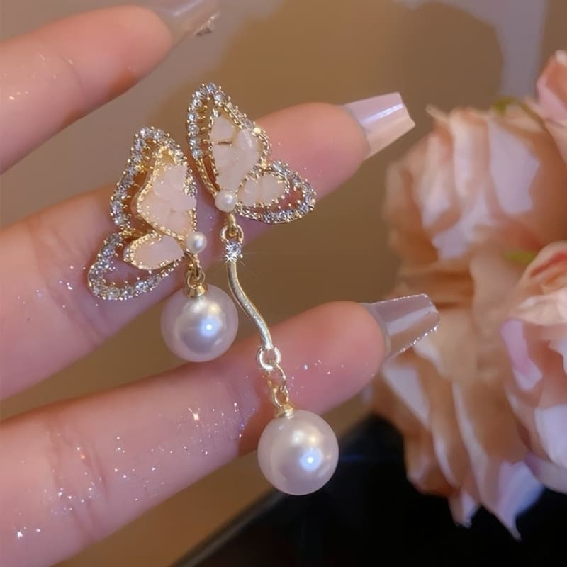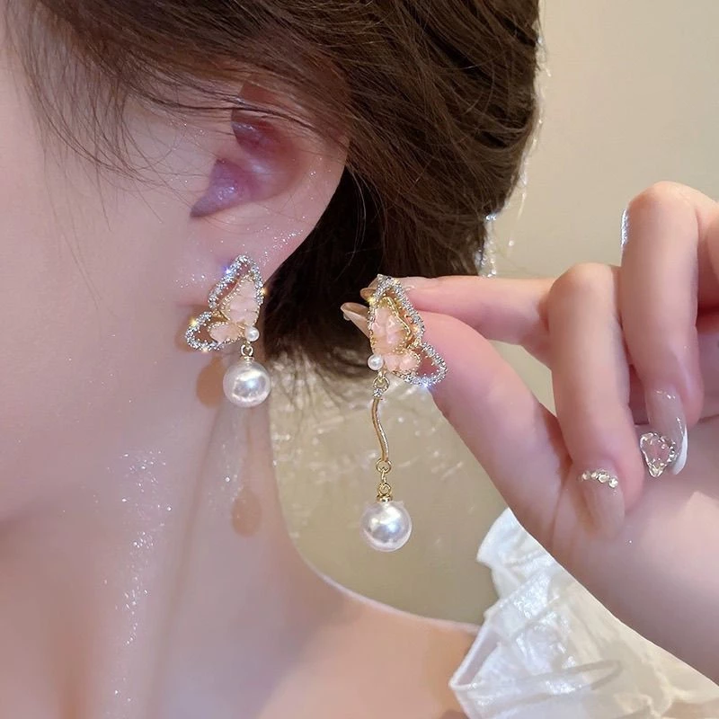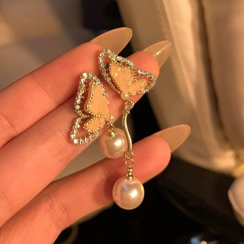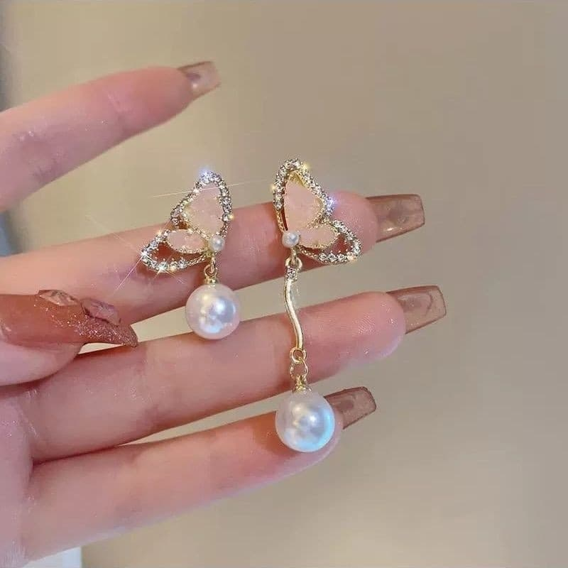 #韓國 #水晶花 #銀針 #不對稱 #長款耳環 #珍珠 #防過敏 #韓系 #吊墜 #花朵 #髮飾