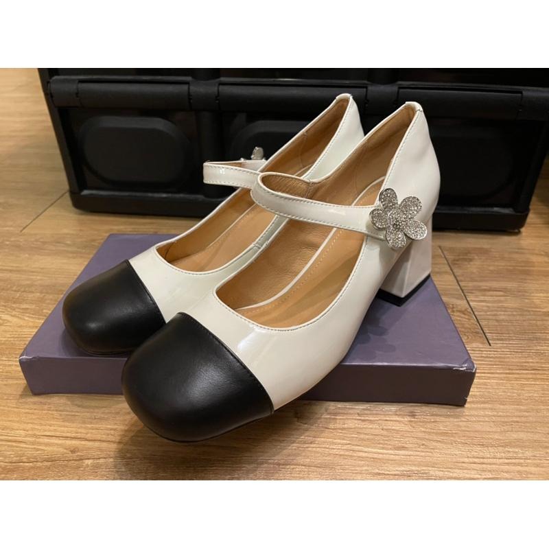 全新鞋底膠膜未撕 外層牛皮拼接牛漆皮 內裡牛皮 整雙皆是真皮