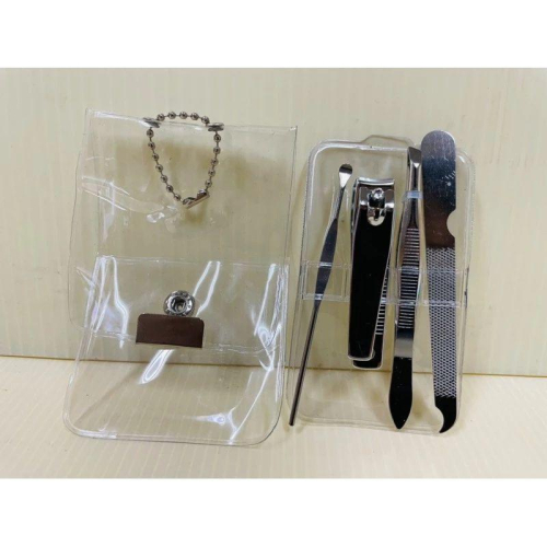 隨身美容道具 一組入 (指甲剪+挖耳器+拔毛器+磨指甲器+吊環透明收納扣包) 產地中國 日本設計 材質-鐵+電鍍 收納包約10.2cmX6.4cm 指甲剪總長約5.6cm總寬約1.1cm 挖耳器總長約8cm 磨指甲器總長約9cm