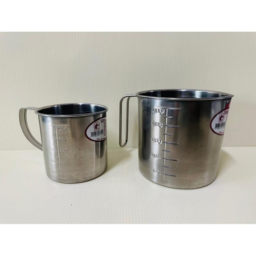 ♦️304不銹鋼量杯 ♦️一入 ♦️1000CC/500CC ♦️產地台灣 ✅500CC 直徑約9.2cm 總高約9cm 總寬約13cm ✅1000CC 直徑約11.1cm 總高約11cm 總寬約15.3cm