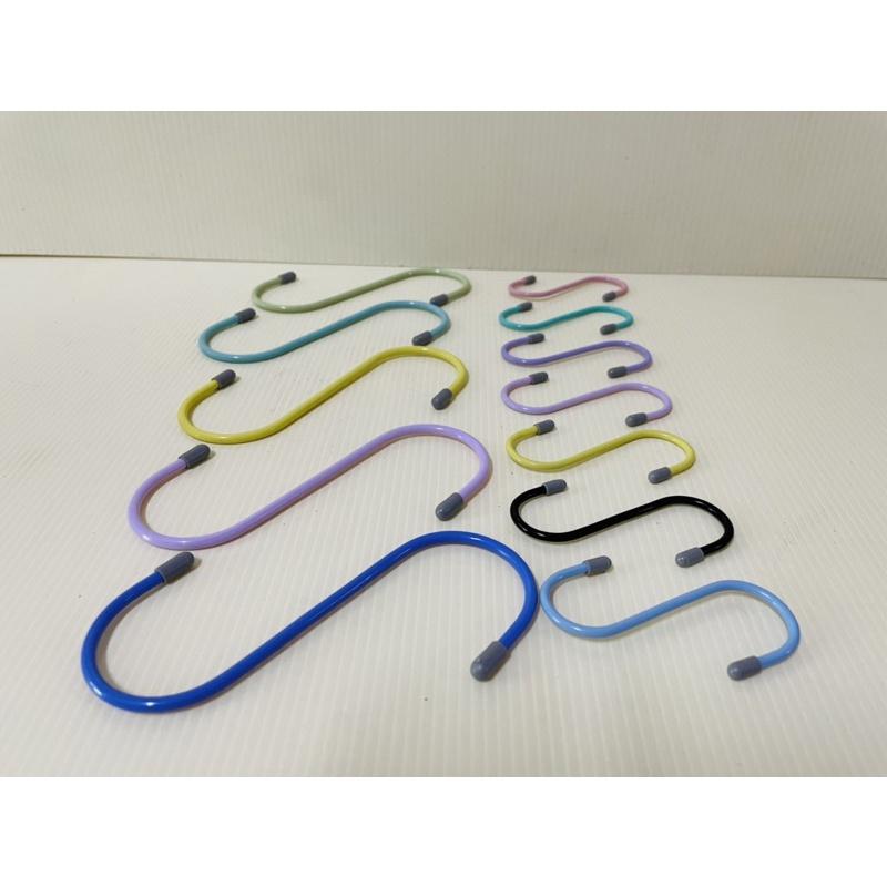 彩色S型掛勾 一入 顏色隨機出無法指定喔 產地中國 ☑️大 總長約12.3cm總寬約5.3cm 內口徑約4cm ☑️小 總長約6.9cm總寬約3.1cm 內口徑約1.8cm