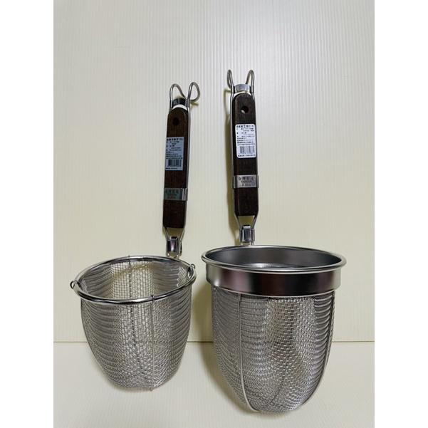 金歡喜304不銹鋼麵切 一入 產地台灣 鋼板壓印304字樣台灣製 304不銹鋼18-8材質 手把木頭材質 (麵切中) 撈網直徑約12.3cm 撈網高約12.5cm 總長約35.2cm (麵切大)新型日式 撈網直徑約13.7cm 撈網高約14.8cm 總長約37cm