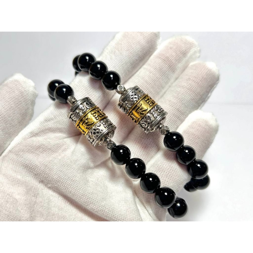 ★2條一標★★黑玉髓8mm搭藏式轉經輪手串#0004