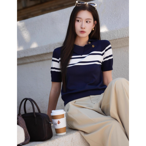 #韓系 #簡約 #氣質 #甜美 #清新 #時尚 #學院風 #美式 #復古 #藍 #白 #撞色 #條紋 #翻領 #鈕扣 #POLO衫 #針織 #短袖 #上衣 #個性 #復古 #減齡 #青年 #知性 #優雅 #淑女 #浪漫 #修身顯瘦 #藏肉 #ootd #euphoriastore #台南