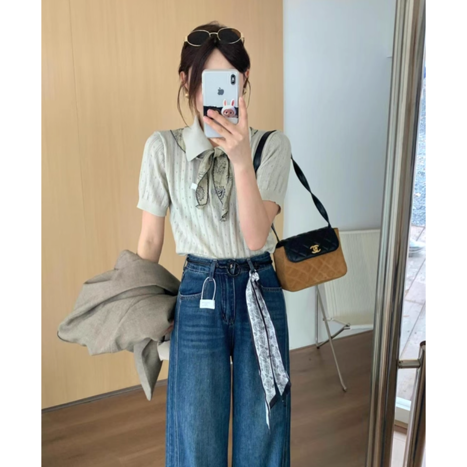 #韓系 #簡約 #氣質 #甜美 #清新 #時尚 #個性 #秋 #絲巾 #繫帶 #翻領 #polo領 #鏤空 #緹花 #針織 #短袖 #上衣 #復古 #減齡 #青年 #知性 #優雅 #淑女 #浪漫 #修身顯瘦 #藏肉 #ootd #euphoriastore #台南